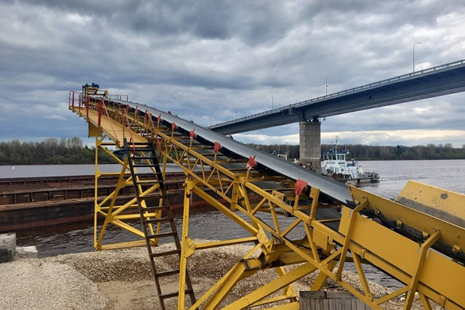 «Чимбульский карьер» в городе Советск на погрузочной линии причала установил на транспортер бункер-дозатор. Модернизация погрузочного оборудования значительно сократила время загрузки барж щебнем и упростила процесс швартовки у причала.